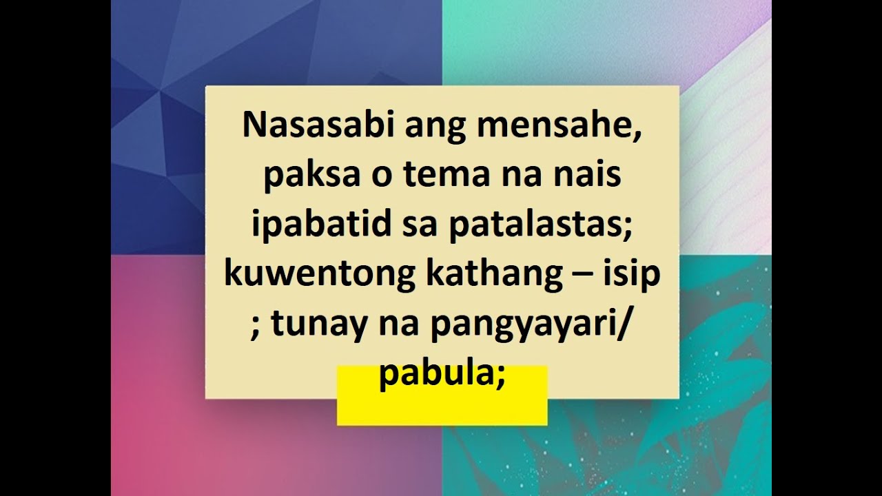 Filipino 3 Pagsasabi Ng Paksa O Tema Ng Teksto Kuwento O Sanaysay Paggamit Nang Tama Ng Pandiwa Youtube