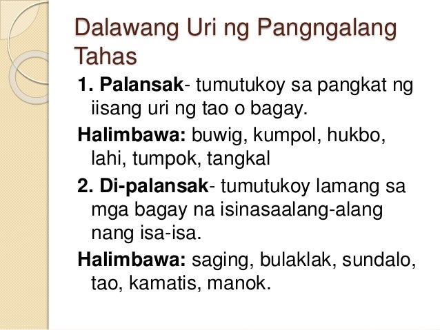 Ito naman ay di-palansak kung tumutukoy ito sa bagay. If the noun is a common noun the student is asked to classify it as tahas basal or lansakan. 2412021 Se te ha enviado una contrasea por correo electrnico.