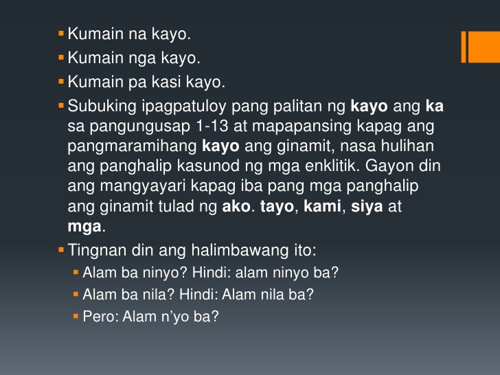 Ito ay ang paggamit ng nang sa. Pagtutupad sa Pangako Kung hindi mo matutupad ang mga pangako mo maraming tao ang magagalit sa. Ilan sa mga halimbawa ng panghalip panao ay ang mga salitang ako ko akin amin kami kayo atin inyo kita kata mo siya kanila at kanya.