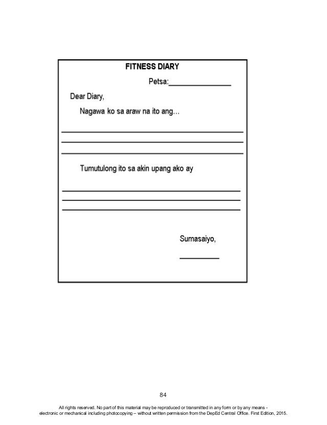 In Your Answer Sheet Make A Fitness Diary Stating All The Learning You Acquire In The Lesson Follow Brainly Ph